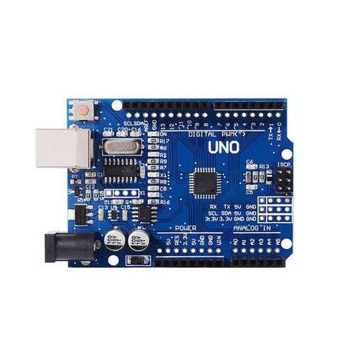 Arduino Uno R3 is a open source microcontroller board based on the ATmega328 SMD chip Inside. This Board has 14 digital input/output pins, 6 analog input pins, Onboard 16 MHz ceramic resonator, Port for USB connection, Onboard DC power jack, An ICSP header and a microcontroller reset button. It contains everything needed to support the microcontroller. Using the board is also very easy, simply connect it to a computer with a USB cable or power it with DC adapter or battery to get started.